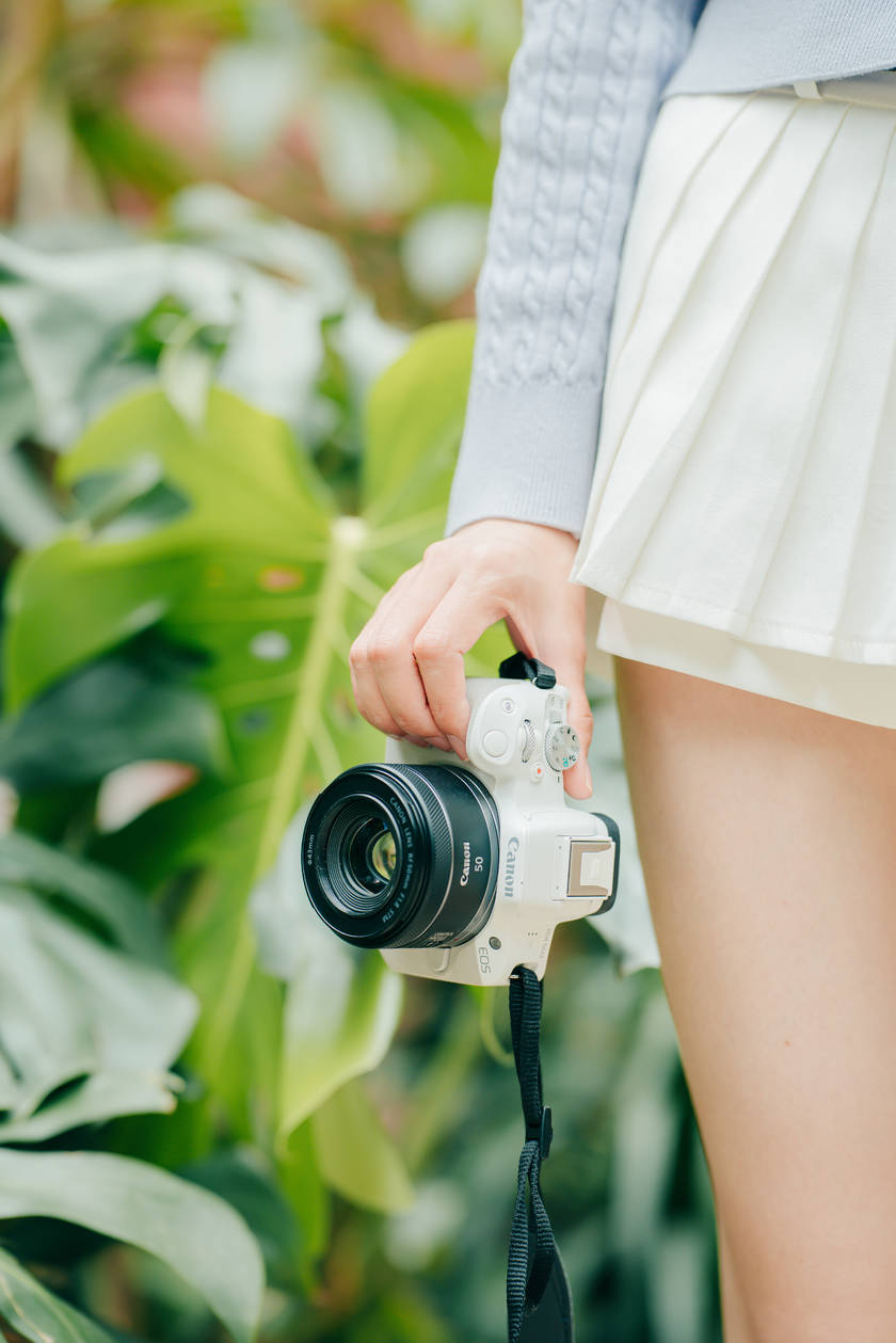 但是这套高颜值相机绝不是徒有其表的花瓶,在它好看的外表之下却有着非常强悍的性能,EOS R50有效像素约2420万,在搭配RF50mm F1.8 STM的时候等效焦距为80mm,接近85mm的经典人像焦段,四舍五入获得一个人像小钢炮啊!在我们拍摄人像的时候背景可以获得大幅虚化,让人物更加突出。